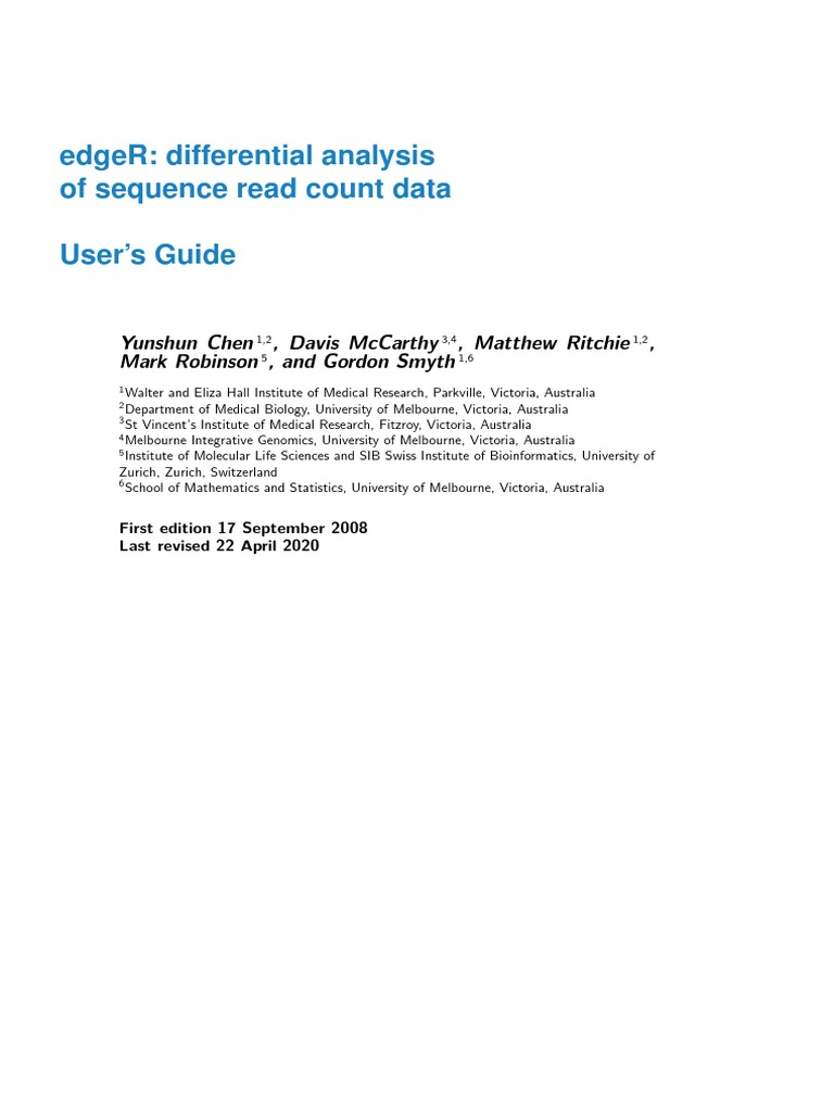 Robinson, MD, McCarthy, DJ, Smyth, GK (2010). edgeR: a Bioconductor package for