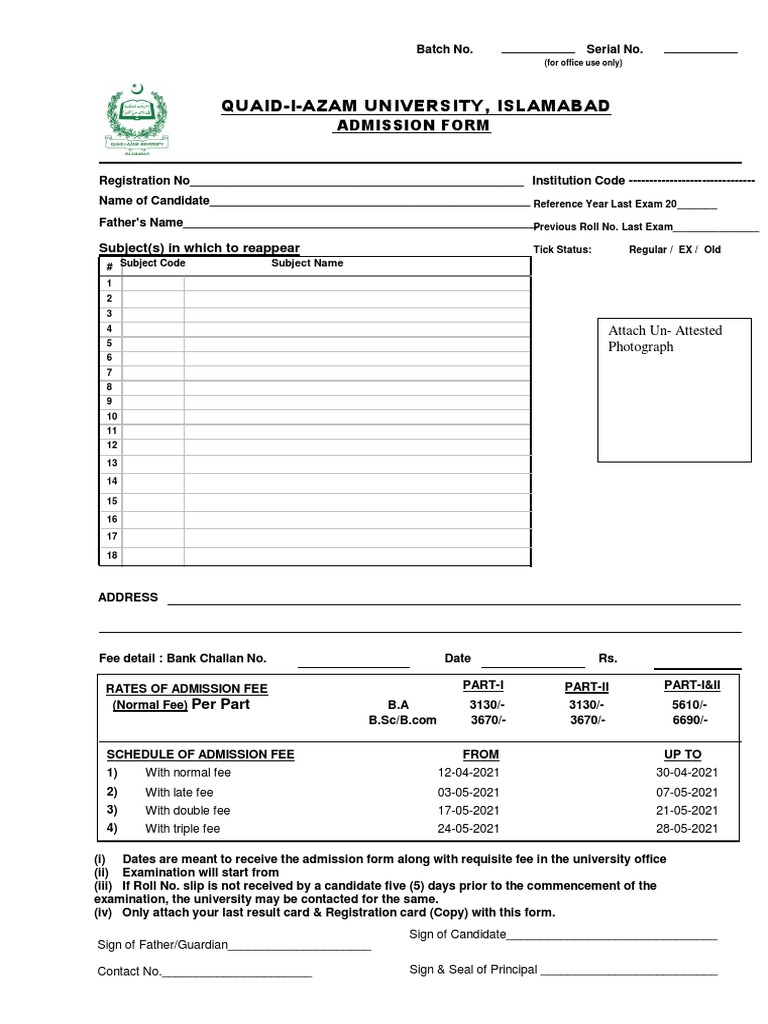(i) Dates are meant to receive the admission form along with requisite fee in the university office