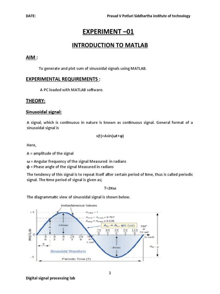 Sum of Sinusoidal Signals is performed using MATLAB Software.