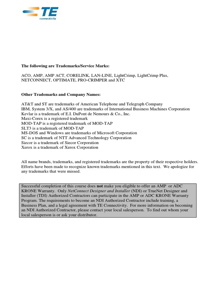 Installer (TDI) Authorized Contractors can participate in the AMP or ADC KRONE Warranty