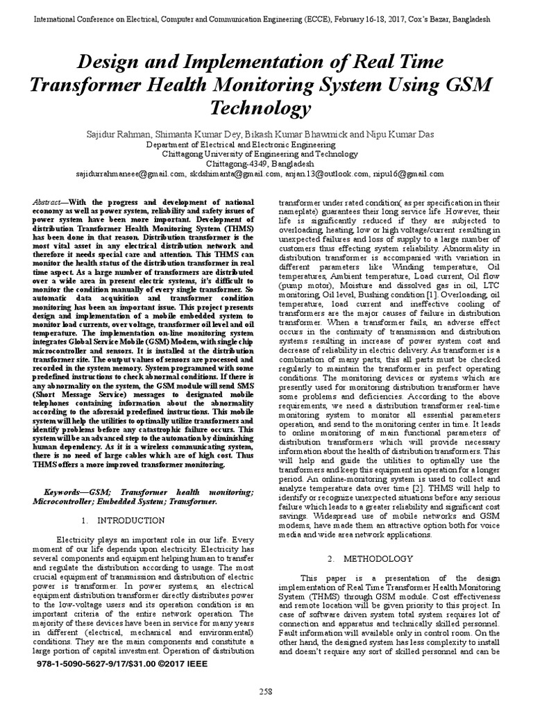 equipment distribution transformer directly distributes power System (THMS) through GSM module. Cost effectiveness