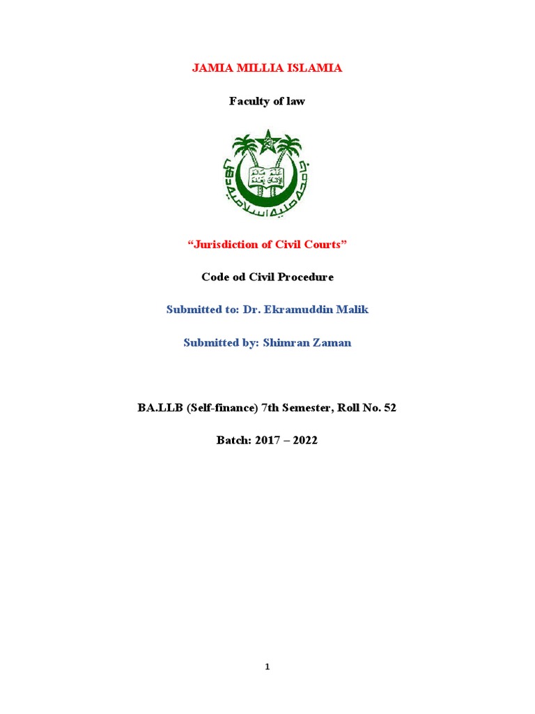 like to thank my department, Faculty of Law, Jamia Millia Islamia University, New Delhi, for