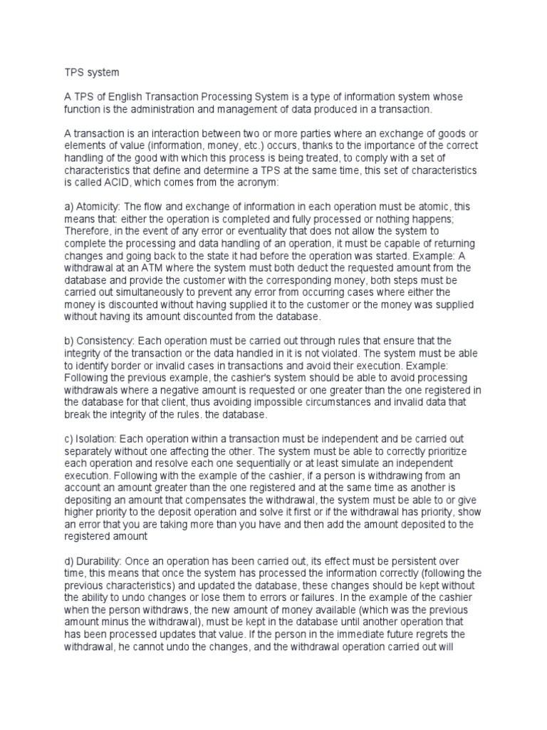 A TPS of English Transaction Processing System is a type of information system whose
