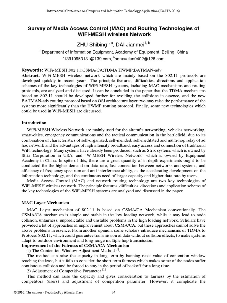 [30] GAO Jian. Optimization and research for BATMAN Routing Protocol of Wireless Mesh Network