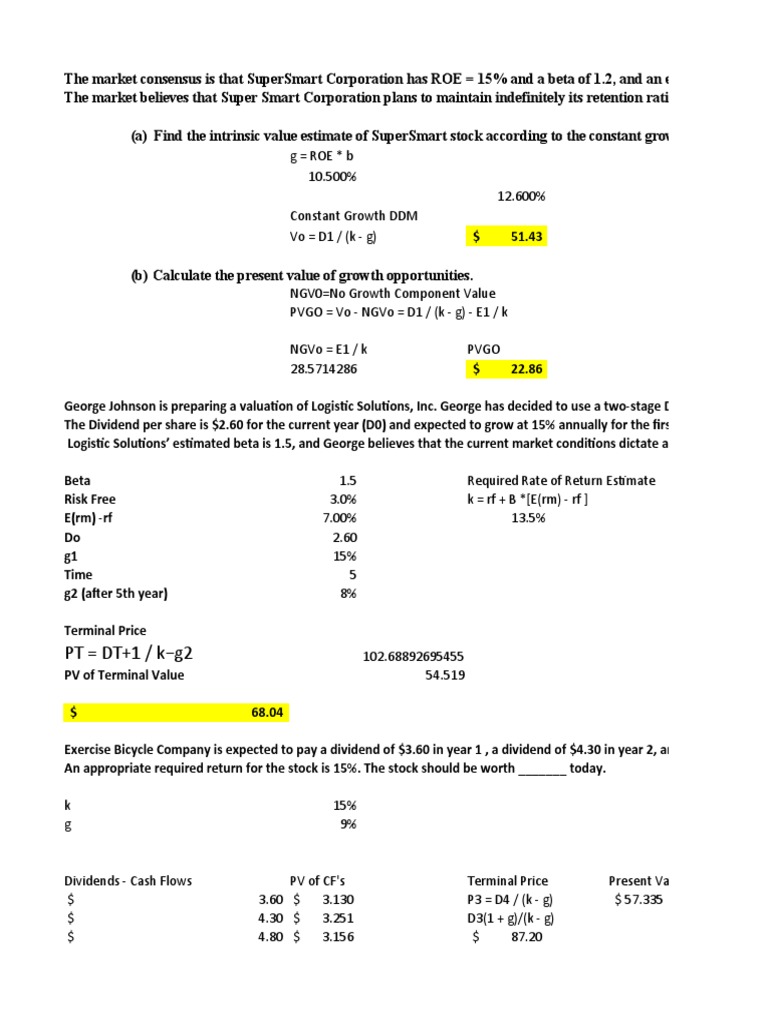 (a) Find the intrinsic value estimate of SuperSmart stock according to the constant growth DDM.