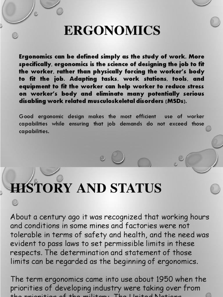 Ergonomics can be defined simply as the study of work. More