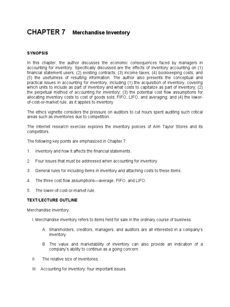 accounting for inventory. Specifically discussed are the effects of inventory accounting on (1)
