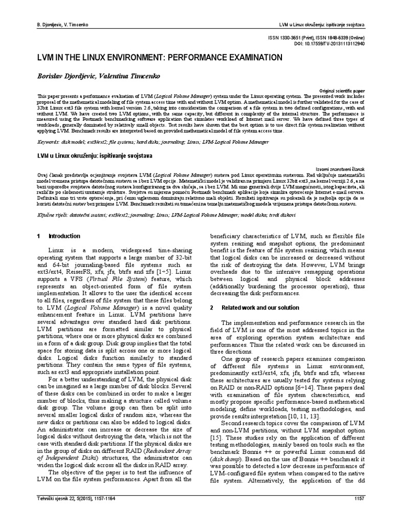 LVM in the Linux environment: performance examination B. Djordjevic, V. Timcenko
