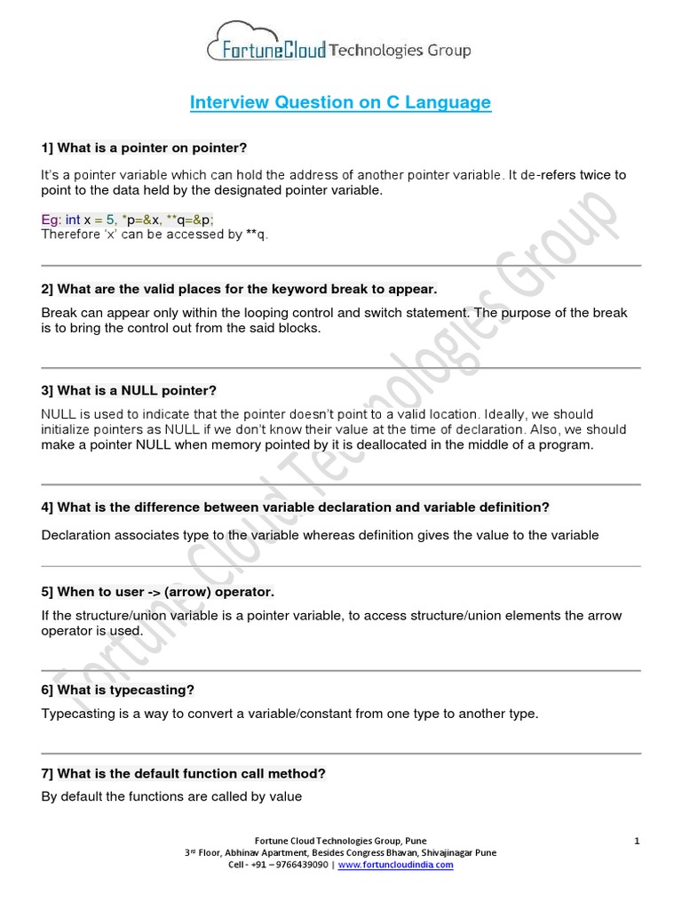 Interview Question on C Language