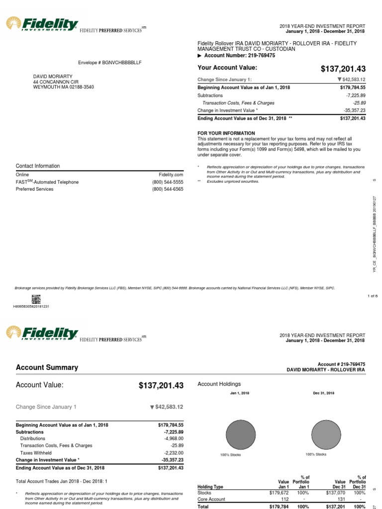 WEYMOUTH MA 02188-3540 Beginning Account Value as of Jan 1, 2018 $179,784.55
