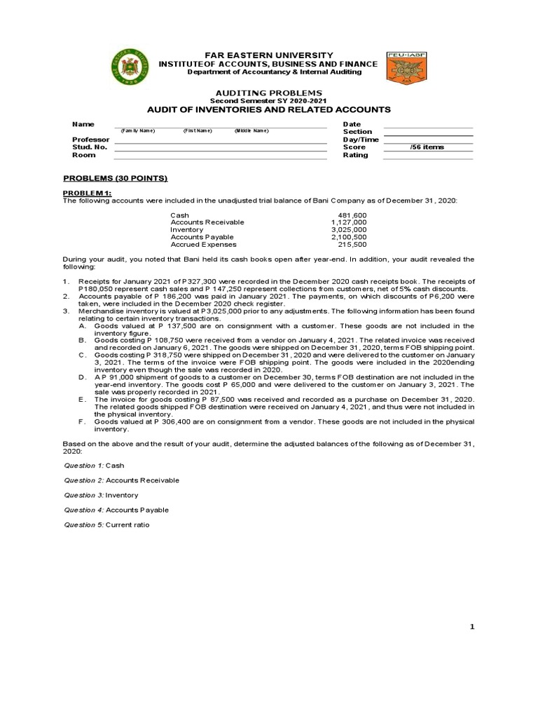 year-end inventory. The goods cost P 65,000 and were delivered to the customer on January 3, 2021. The