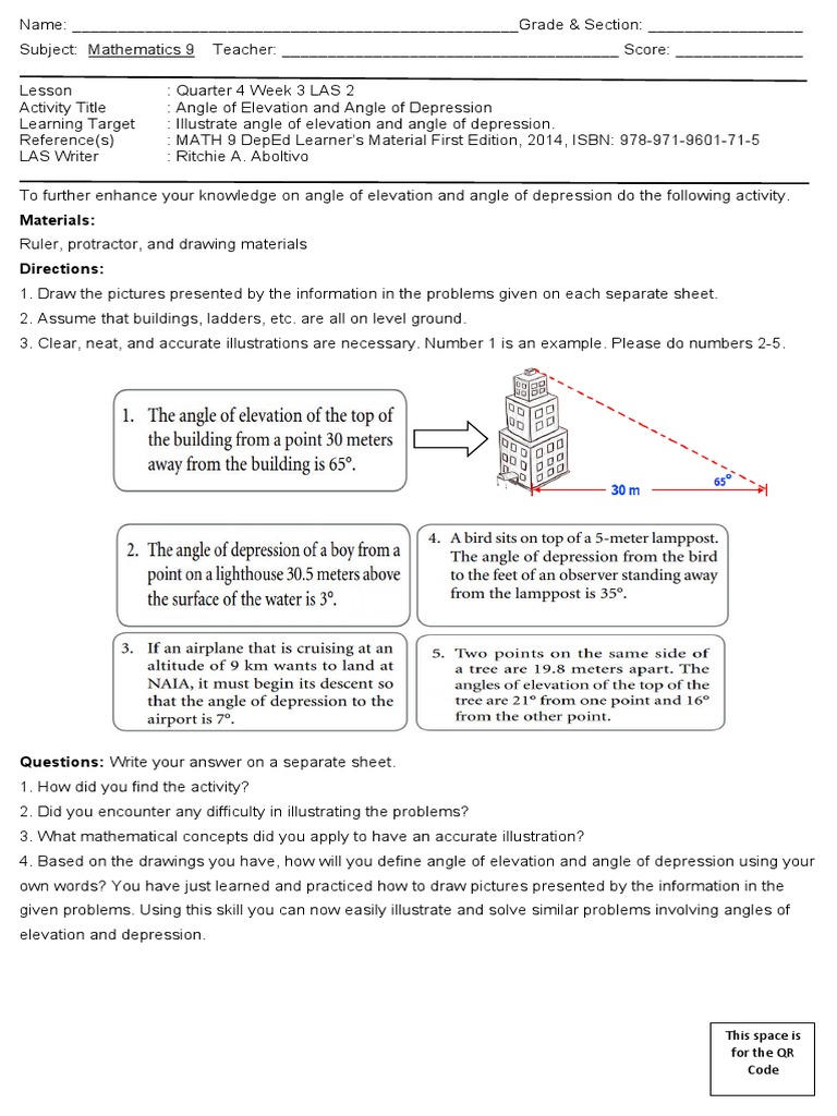 To further enhance your knowledge on angle of elevation and angle of depression do the following activity.