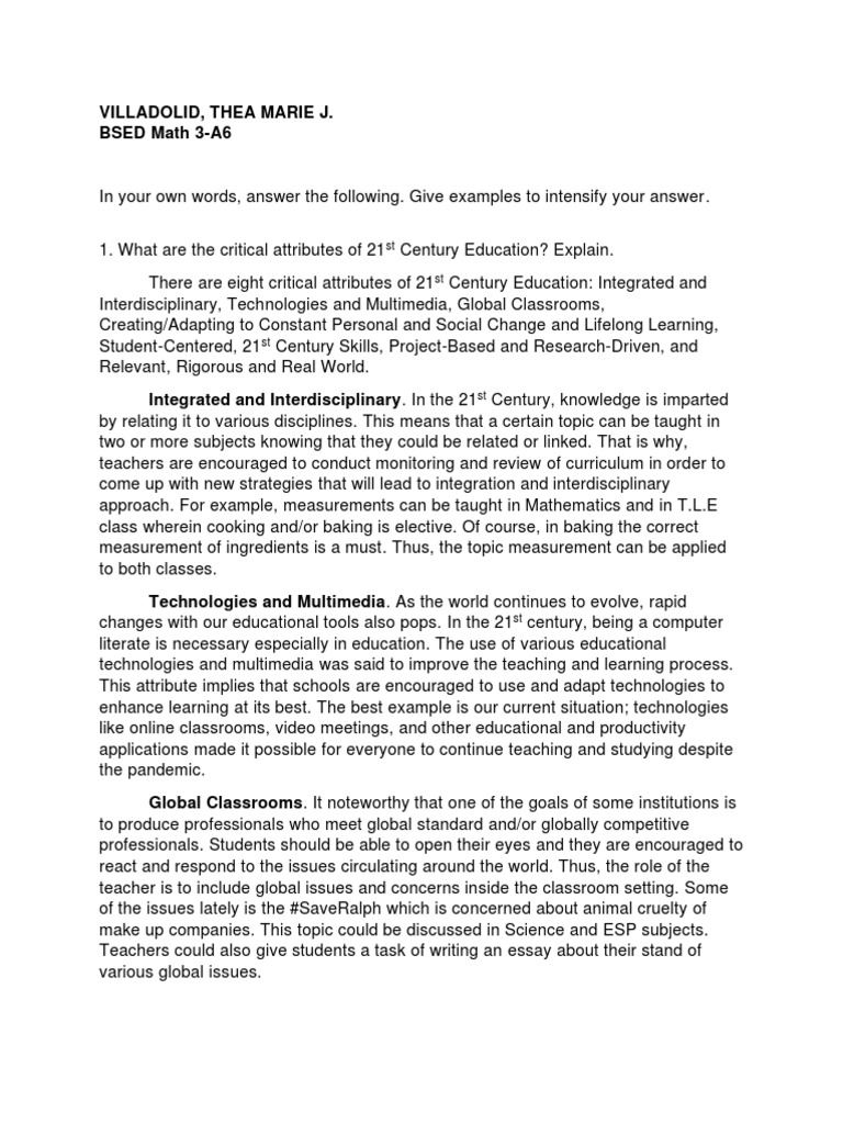 1. What are the critical attributes of 21 st Century Education? Explain.