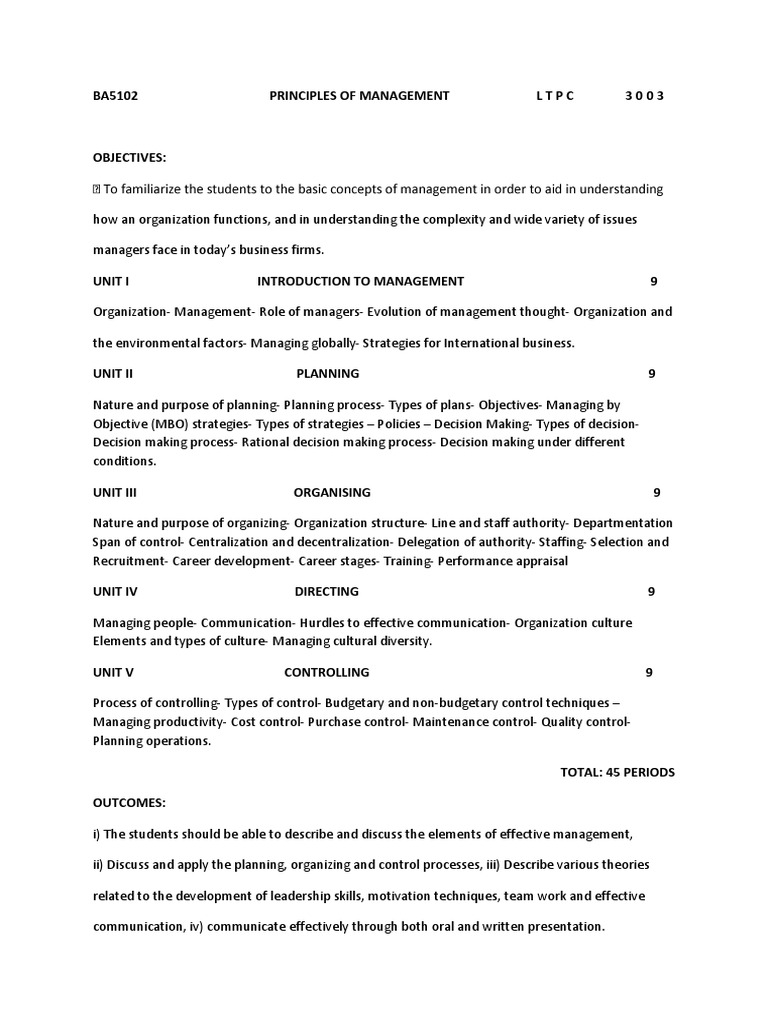 BA5102 PRINCIPLES OF MANAGEMENT LTPC 3003