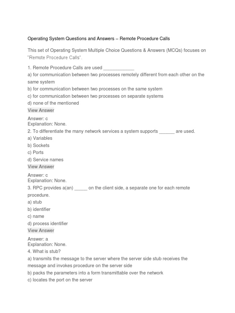 3. RPC provides a(an) _____ on the client side, a separate one for each remote
