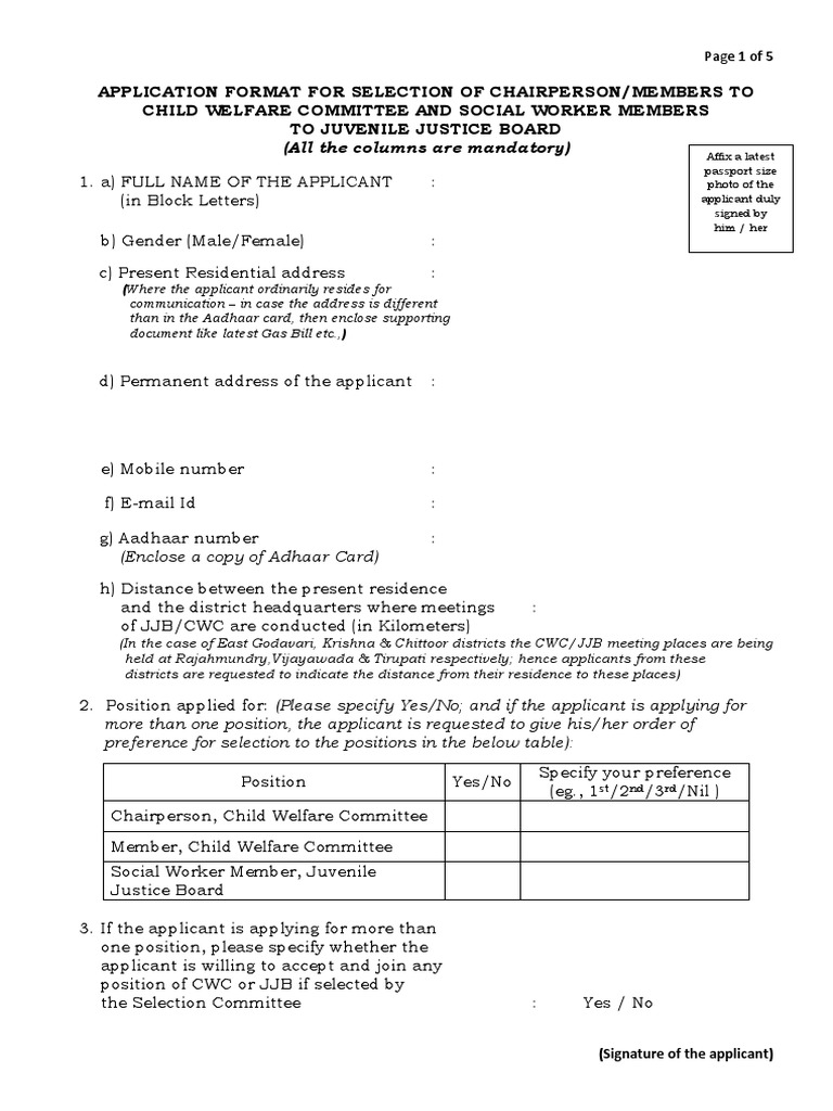 APPLICATION FORMAT FOR SELECTION OF CHAIRPERSON/MEMBERS TO