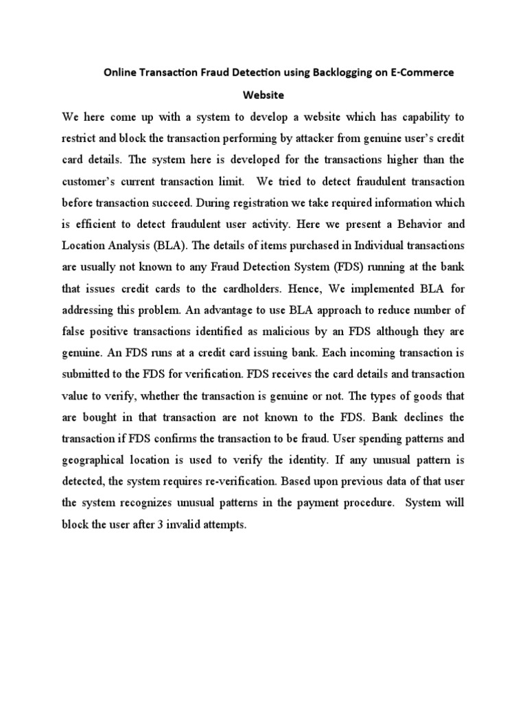 Online Transaction Fraud Detection using Backlogging on E-Commerce