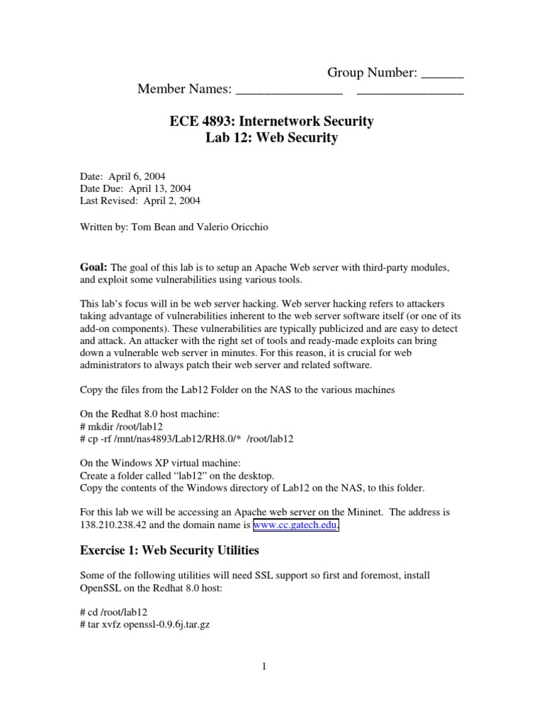 Goal: The goal of this lab is to setup an Apache Web server with third-party modules,