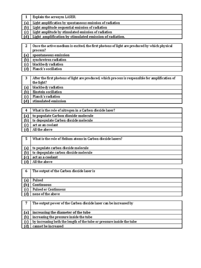 1 Explain the acronym LASER.