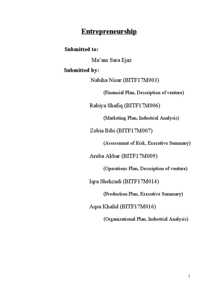 weakness in marketing and production plan so try to keep all aspects in our business plan.