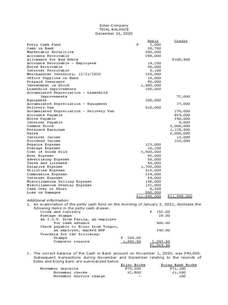 1. An examination of the petty cash fund on the morning of January 2, 2021, discloses the