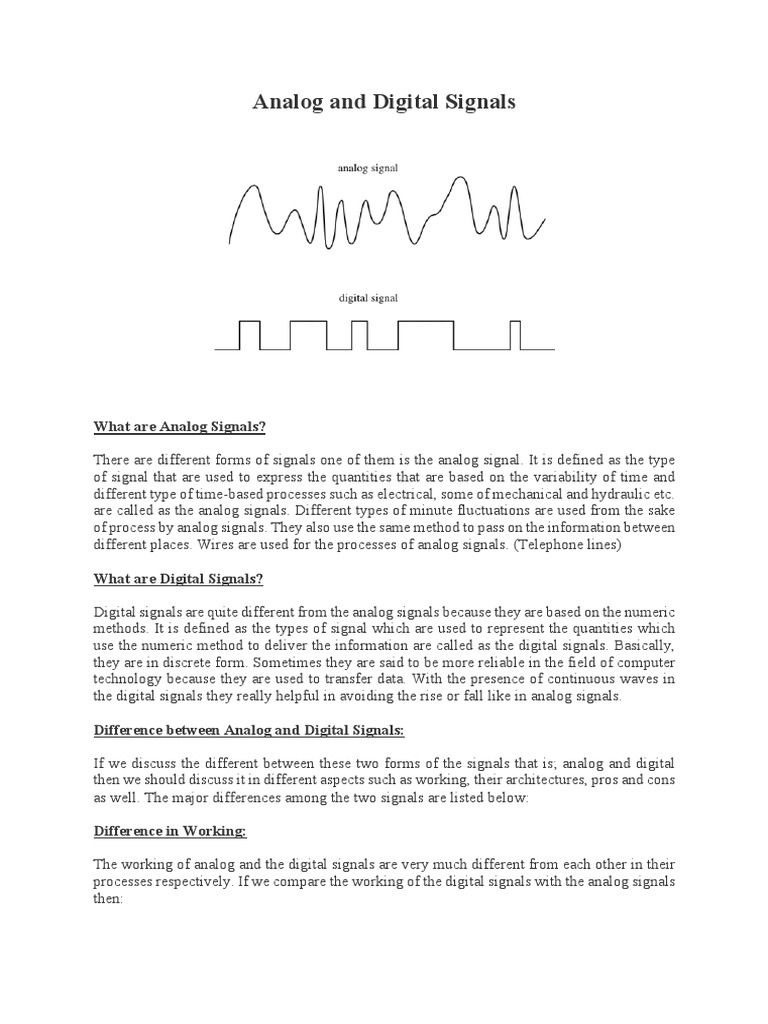 If we discuss the different between these two forms of the signals that is; analog and digital