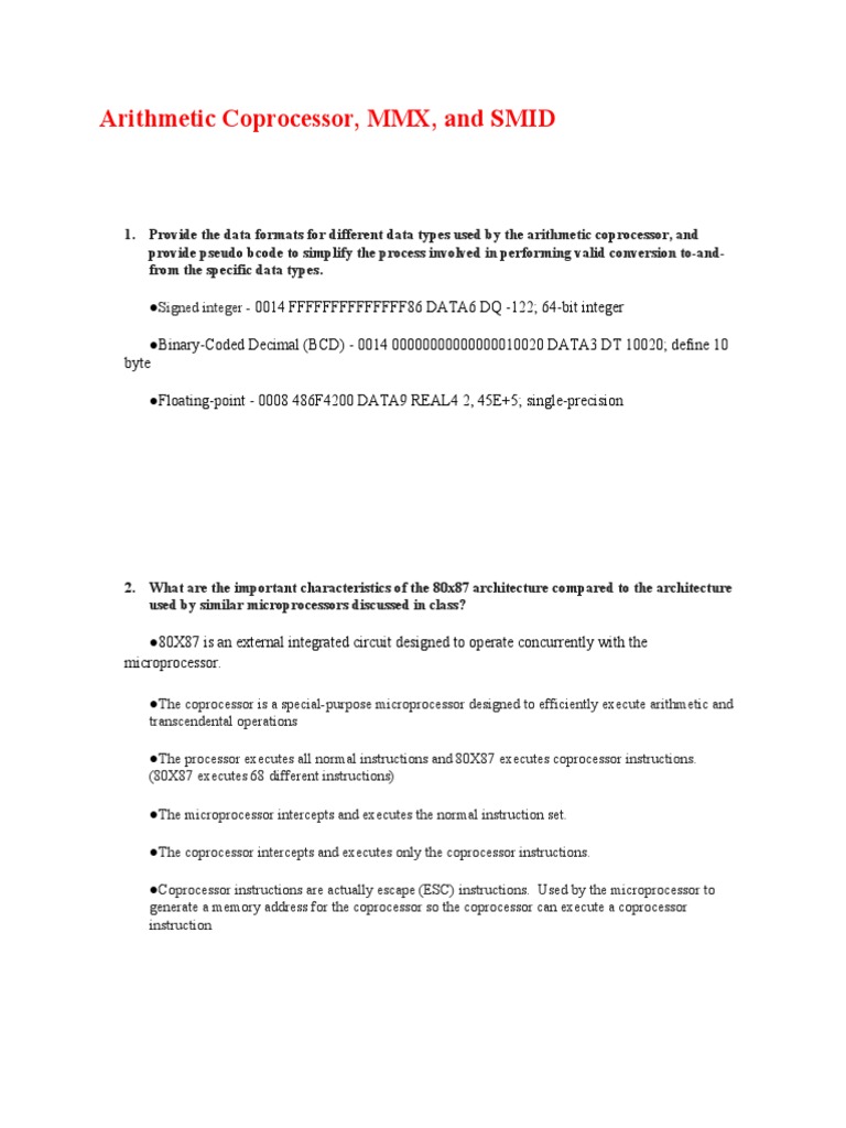instruction set of the arithmetic coprocessor. Each row for each instruction must provide the