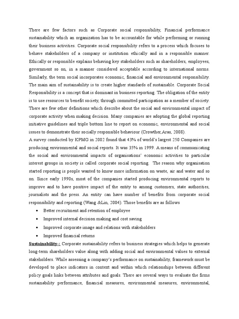 The main aim of sustainability is to create higher standards of sustainable. Corporate Social