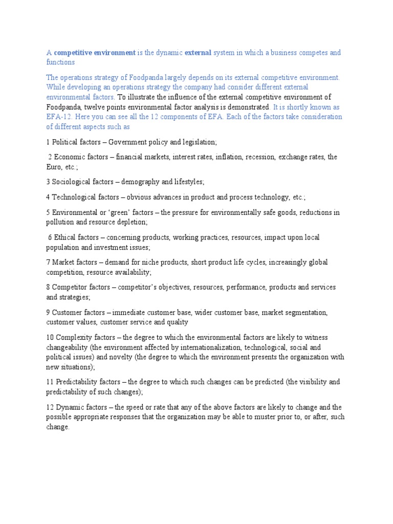 Foodpanda, twelve points environmental factor analysis is demonstrated. It is shortly known as