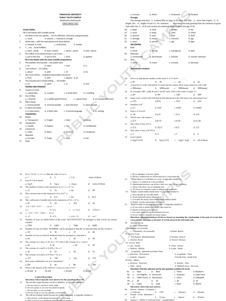 TRIBHUVAN UNIVERSITY a. Furnace b. Attire c. Ornament d.