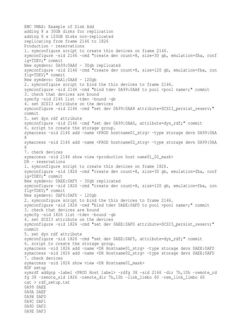 1. symconfigure script to create thin devices on frame 2146.
