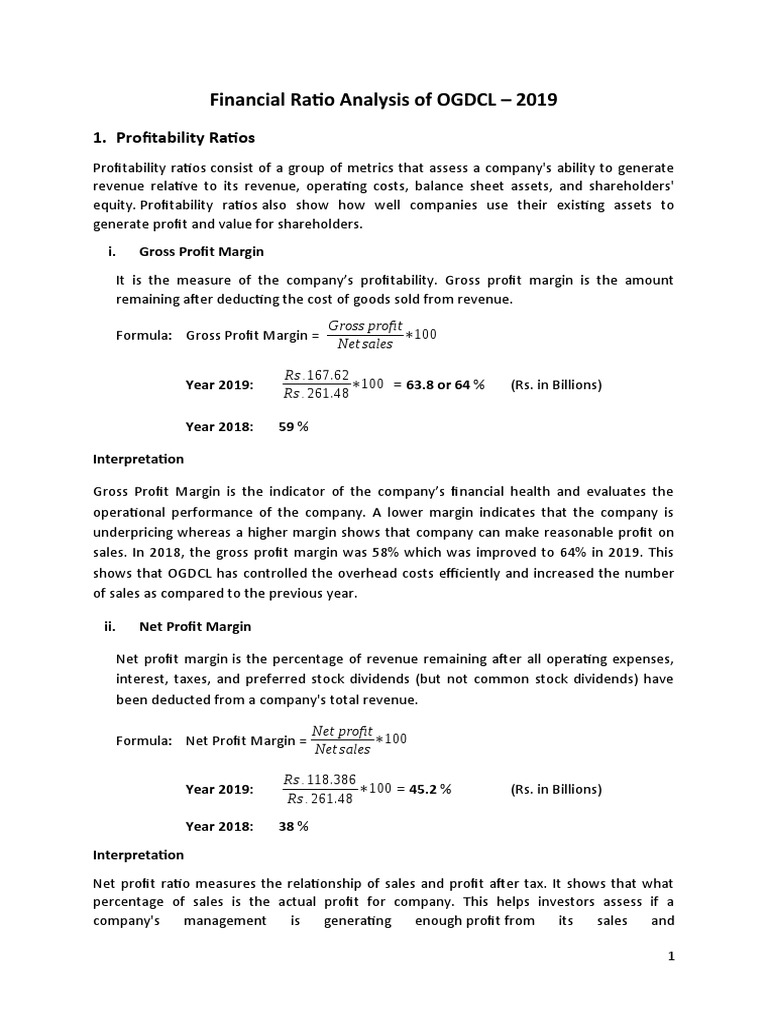 generate profits. If we compare the ROE of OGDCL for the year 2018 and 2019, it shows