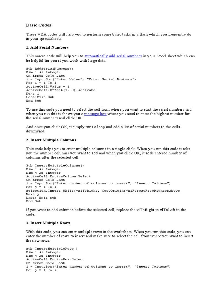 These VBA codes will help you to perform some basic tasks in a flash which you frequently do