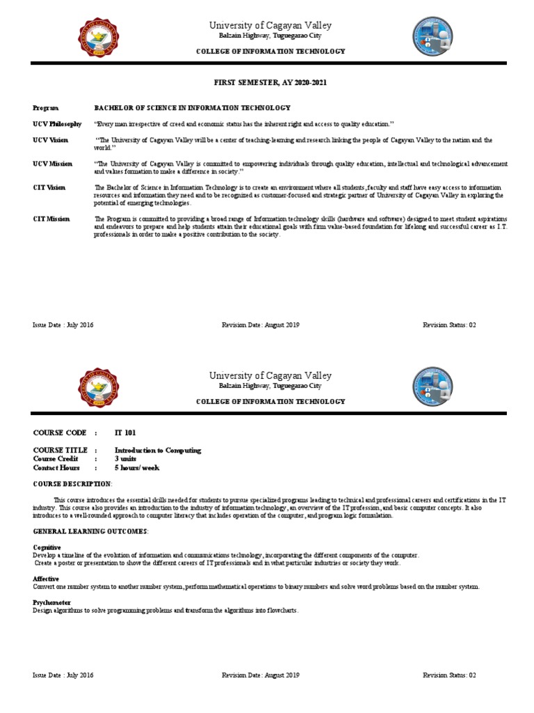 industry. This course also provides an introduction to the industry of information technology, an overview of the IT profession, and basic computer concepts. It also