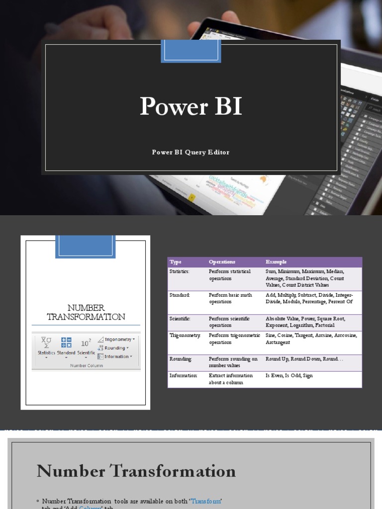 ◦ ‘Transform’ tab is having group named ‘Number Column’ for