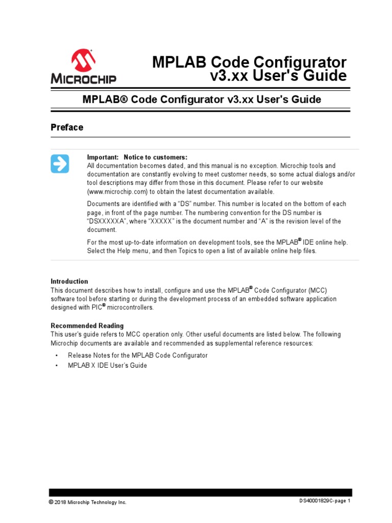 This document describes how to install, configure and use the MPLAB Code Configurator (MCC)