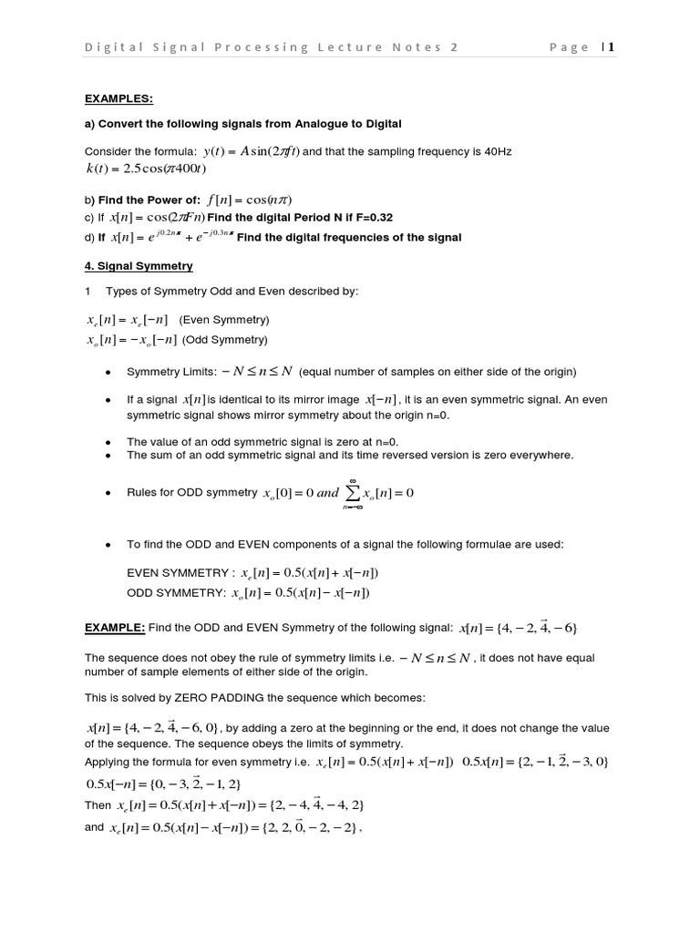 Applying the formula for even symmetry i.e. x e [ n] 0.5( x[ n] x[ n]) 0.5x[n] {2, 1, 2, 3, 0}