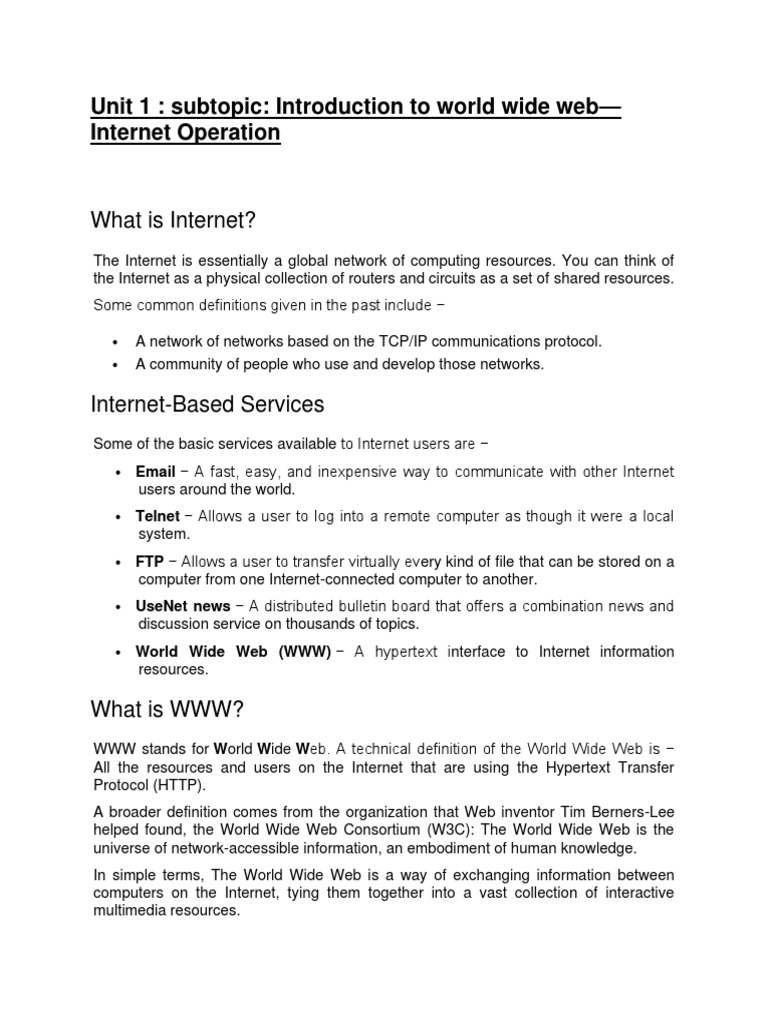 • World Wide Web (WWW) − A hypertext interface to Internet information