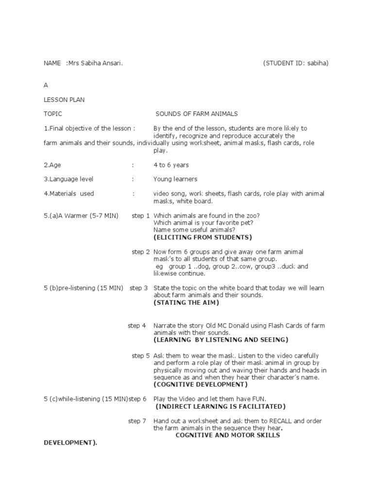 5 (d)post-listening ( 5 MIN) step 8 DRILL the farm animals and their sounds by asking them