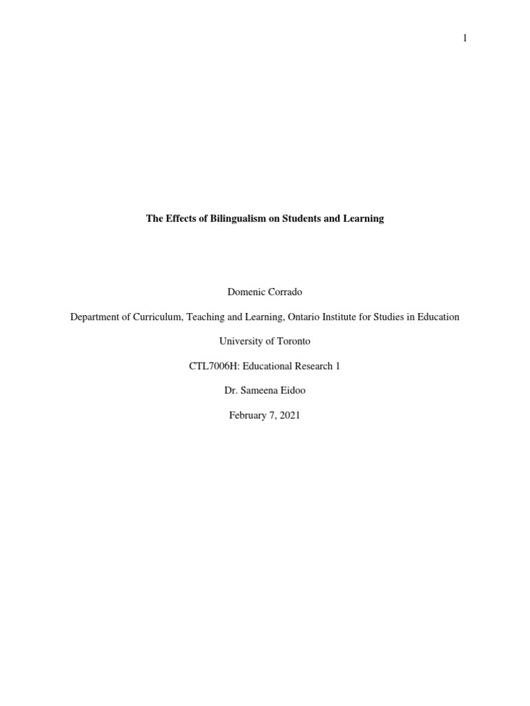 Discovering what effects bilingualism has on learning is a important goal considering the