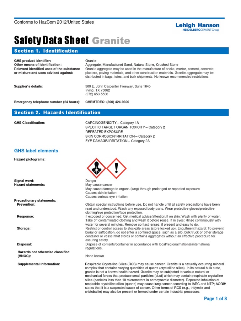 Safety Data Sheet Granite
