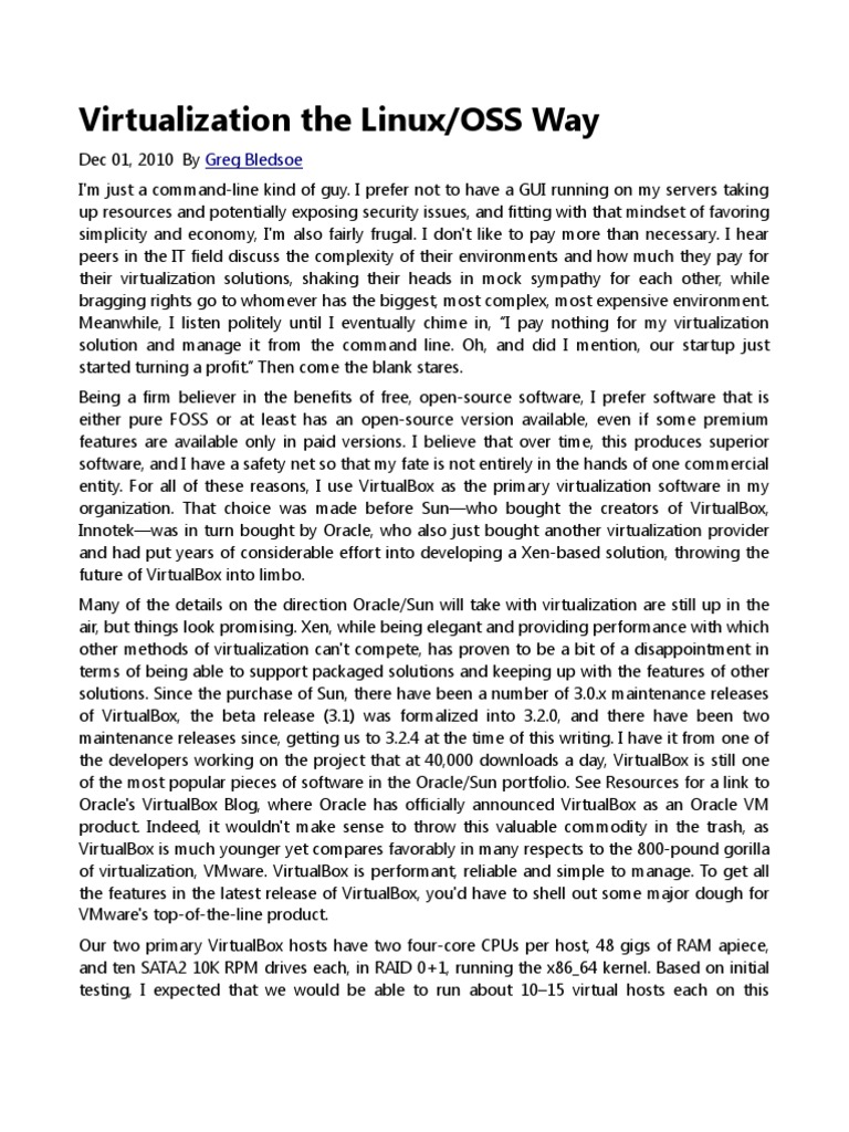 Virtualization the Linux/OSS Way