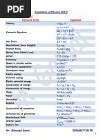 SPH4U: Physics, Grade 12, University Preparation CONSTANTS AND EQUATIONS