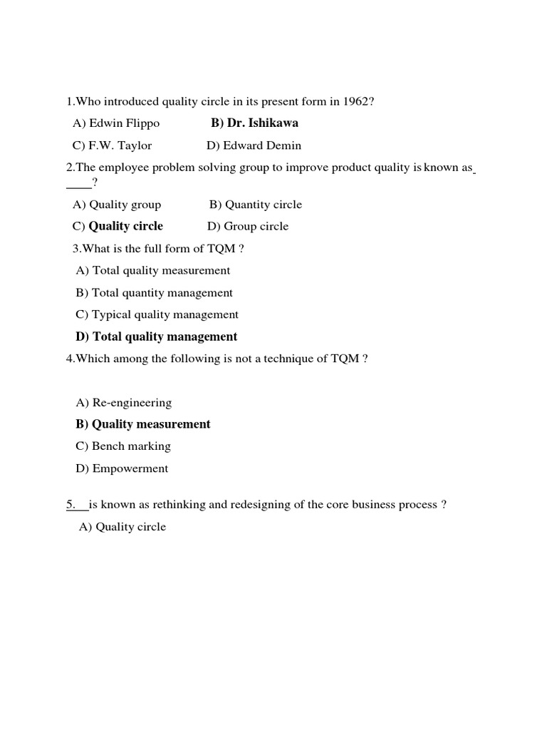 (a) Total Quality Management