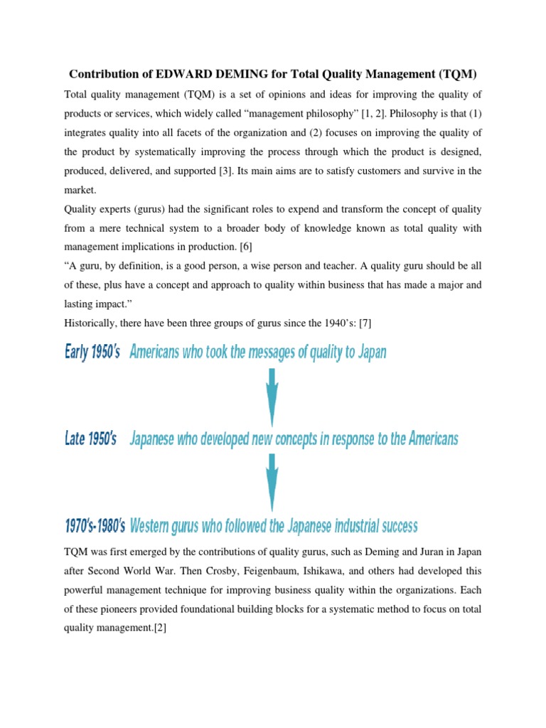 TQM was first emerged by the contributions of quality gurus, such as Deming and Juran in Japan