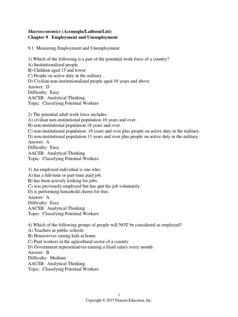 Chapter 9 Employment and Unemployment: Macroeconomics (Acemoglu/Laibson/List)