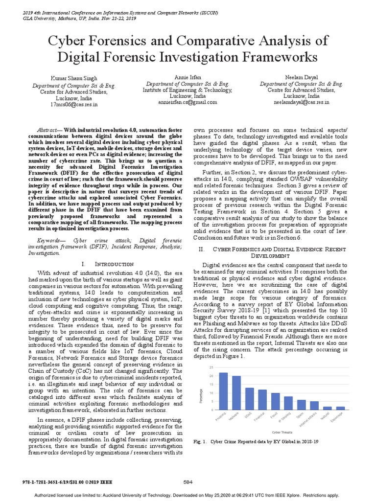 investigation framework (DFIF); Incident Response; Analysis; II. CYBER FORENSICS AND DIGITAL EVIDENCE: RECENT