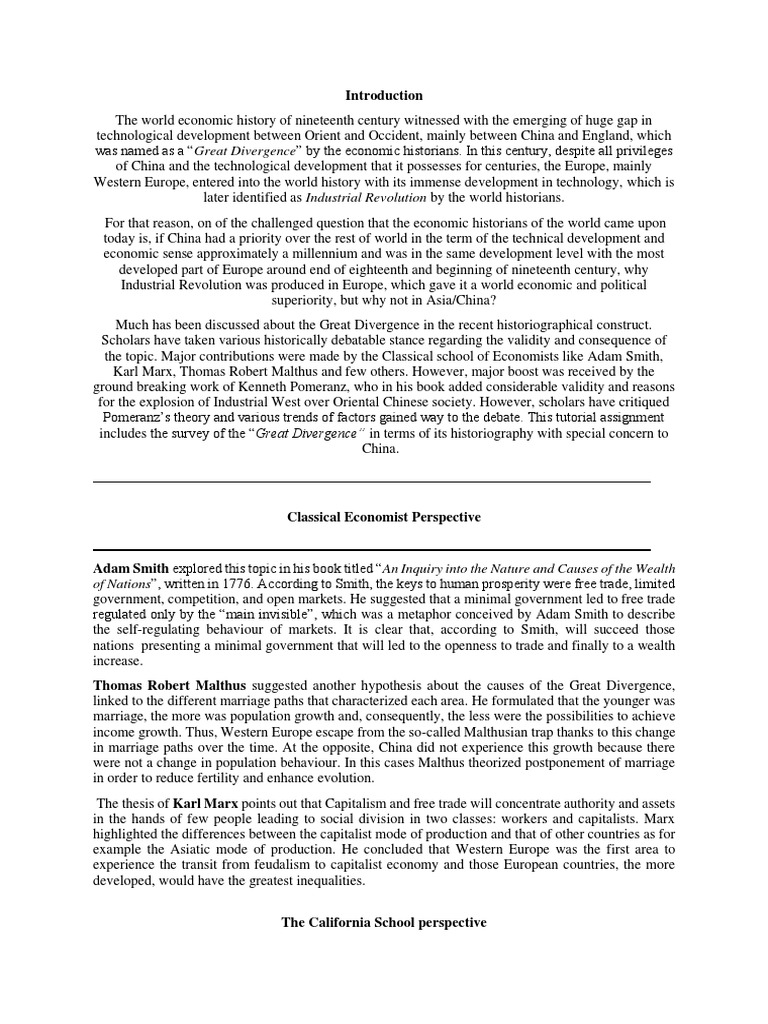 Pomeranz’s theory and various trends of factors gained way to the debate. This tutorial assignment