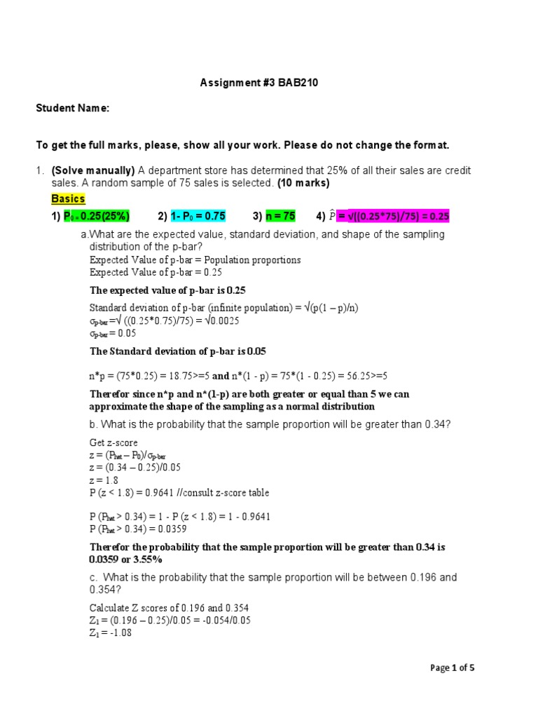 1. (Solve manually) A department store has determined that 25% of all their sales are credit