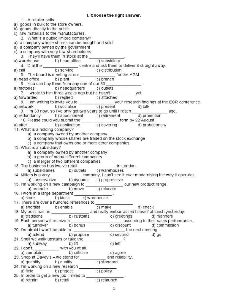 1. (a) Do you work / (b) Are you working on a new project at the moment?